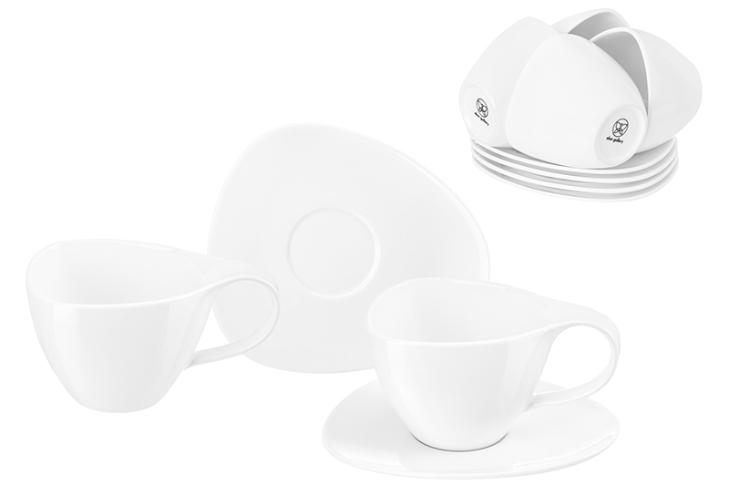 Набор 6 чайных пар из серии «Колоранс» от Elan Gallery предназначен для эстетичной сервировки вашего стола. Размер каждой ёмкости – 14,3х10,3х7,8 см, объём – 300 мл. Размер каждого блюдца – 17,2х15,4х2,2 см. Выполнены из высококачественного белого фарфора. Он не впитывает цвет напитков и продуктов и легко отмывается, благодаря чему надолго сохранит свою белизну. Серия «Колоранс» – это фактурная посуда в современном исполнении. Изделия имеют необычную геометрическую форму, а благодаря «впалой» поверхности ручки кофейную кружку приятно держать и удобно переносить. Набор поможет провести множество приятных завтраков с капучино и латте, а также уютные чайные вечера с конфетами, вафлями, другими десертами и сладостями. Подойдёт ценителям чая и кофе, которые любят пить из красивой и необычной посуды. Согрейтесь зимой любимым напитком: какао с маршмэллоу, ягодным чаем, горячим шоколадом. Летом освежитесь домашним лимонадом или морсом. Используйте сервировочные блюдца как подставки для чашек, чтобы порадовать гостей изящной сервировкой. Положите на десертные тарелки пирожные, кусочки торта или домашнего пирога. Подойдут не только для десертов, но и для закусок: сырной нарезки, сырокопчёной колбасы или свежих овощей и зелени. Декоративные изделия помогут провести запоминающееся чаепитие в большой компании. Не рекомендуется применять абразивные моющие средства. Подходят для использования в микроволновой печи и посудомоечной машине. Поставляются в дизайнерской картонной коробке – благодаря ей вам не потребуется дополнительная подарочная упаковка. Фарфоровая сервировочная посуда послужит оригинальным подарком для хозяйки, ценящей не только практичность, но и привлекательность. Серия «Колоранс» от бренда Элан Галерея станет украшением любого кухонного инвентаря и позволит собрать сервиз в едином стиле!