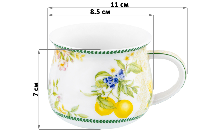 БЫЛО 352 руб! Кружка 250 мл 11*8,5*7 см "Лимоны" бочонок, фарфор NEW BONE CHINA