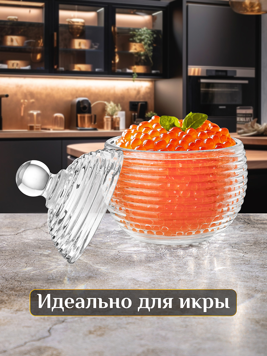 Горшочек для мёда Elan Gallery "Каскад" с крышкой выполнен из стекла и украшен декоративным рельефным узором в виде горизонтальных полосок. Размер изделия – 8,2х8,2х11 см, объём – 150 мл. Высота без крышки – 5,2 см. Прозрачная баночка с полосатым рельефом подойдёт для хранения мёда, варенья, сахара и соли. Можно использовать её как ёмкость для чая, кофе и других сыпучих продуктов. Поможет отпраздновать Широкую Масленицу со вкусом! Масленица – это чудесный повод собраться за праздничным столом и насладиться тёплой атмосферой и традиционной русской кухней. В ассортименте бренда Elan Gallery вы найдёте предметы декора и красивую посуду для приготовления и сервировки масленичных блюд. Пусть Масленичная неделя принесет вам радость и множество вкусных моментов! Декоративная баночка круглой формы станет гармоничным дополнением при сервировке вашего стола как в будни, так и на праздник. Красивый дизайн позволит использовать её не только для хранения продуктов, но и для подачи на стол. Положите в неё конфеты или икру, чтобы удивить гостей изящной сервировкой. Стеклянную ёмкость с крышечкой можно использовать не только как сахарницу, икорницу или соусник, но и для специй и приправ. Это позволит держать под рукой всё необходимое во время приготовления и приёма пищи. На даче медовница будет незаменимой для семейного чаепития, а также подойдёт для подачи ягод. В качестве альтернативы красивую вазочку с крышкой можно использовать как шкатулку или органайзер. Сложите в неё украшения и любые маленькие предметы. Подходит в роли стакана для свечи. Не рекомендуется применять абразивные моющие средства. Нельзя использовать в микроволновой печи. Можно мыть в посудомоечной машине. Поставляется в стильной картонной упаковке. Красивая посуда – это отличный подарок на любой праздник. Медовый бочонок "Каскад" станет многофункциональным дополнением вашего кухонного инвентаря и украсит домашний интерьер!