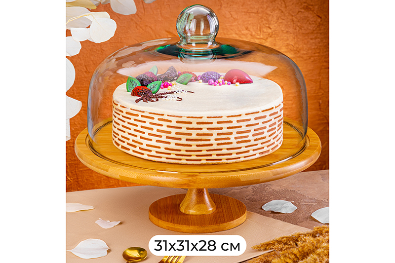 БЫЛО 3828 руб! Блюдо сервировочное на ножке 31,5*31,5*28,5 см + стеклянная крышка