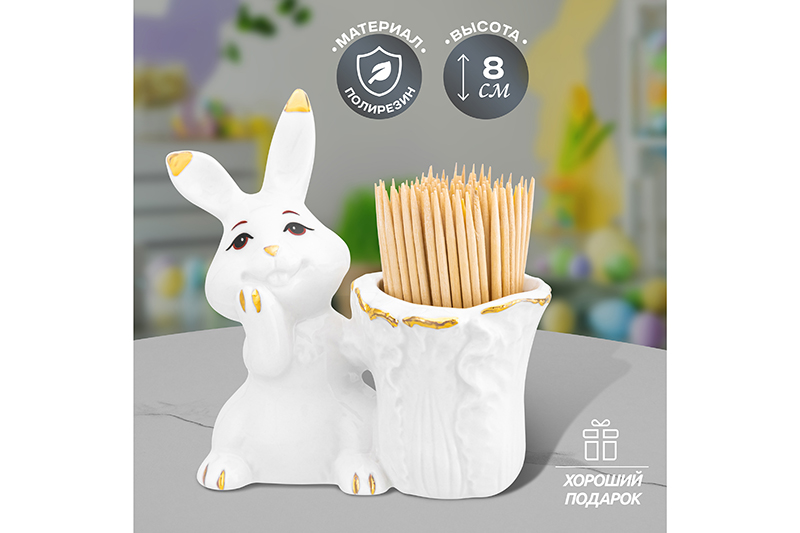 БЫЛО 409 руб! Вазочка п/зубочистки 8*4*8,5 см "Кролик с капустой" белая с золотом