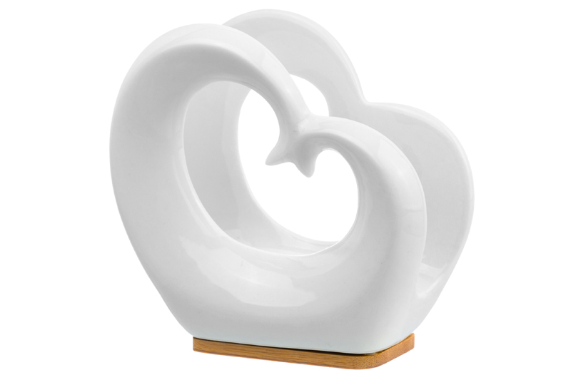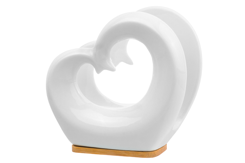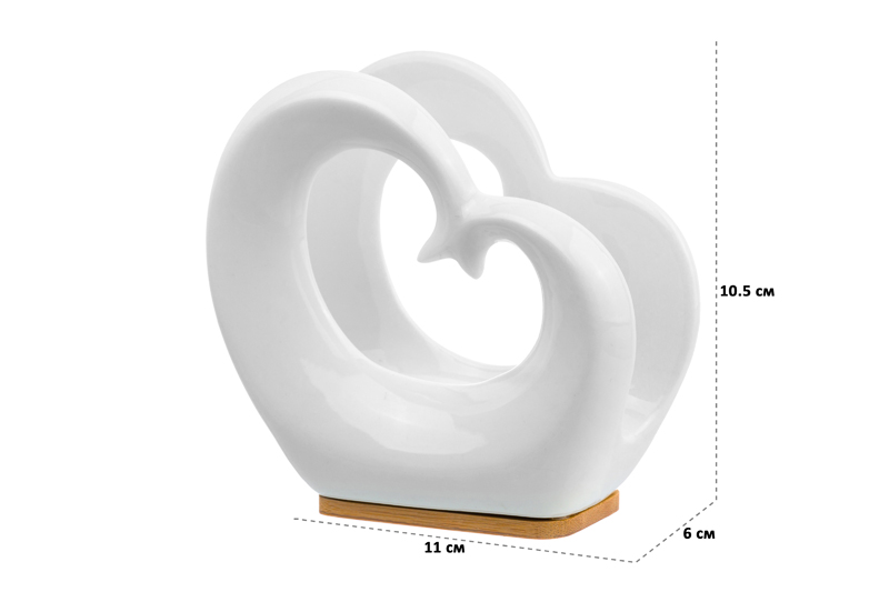 Салфетница “Сердце” послужит стильным и функциональным элементом декора. Размер изделия – 11х6х10,5 см. Она выполнена из высококачественного белого фарфора с использованием натурального бамбука. Расположите настольный держатель на кухне или в столовой, на рабочем столе или в спальне. Поставьте его на журнальный столик или полку, чтобы привнести в комнату атмосферу уюта. Красивая фигурная салфетница найдёт место в любой части вашего дома. Не рекомендуется применять абразивные моющие средства. Не использовать в посудомоечной машине, не замачивать. Поставляется в прочной картонной упаковке. Она станет приятным и необычным подарком для ваших родных, близких и друзей!