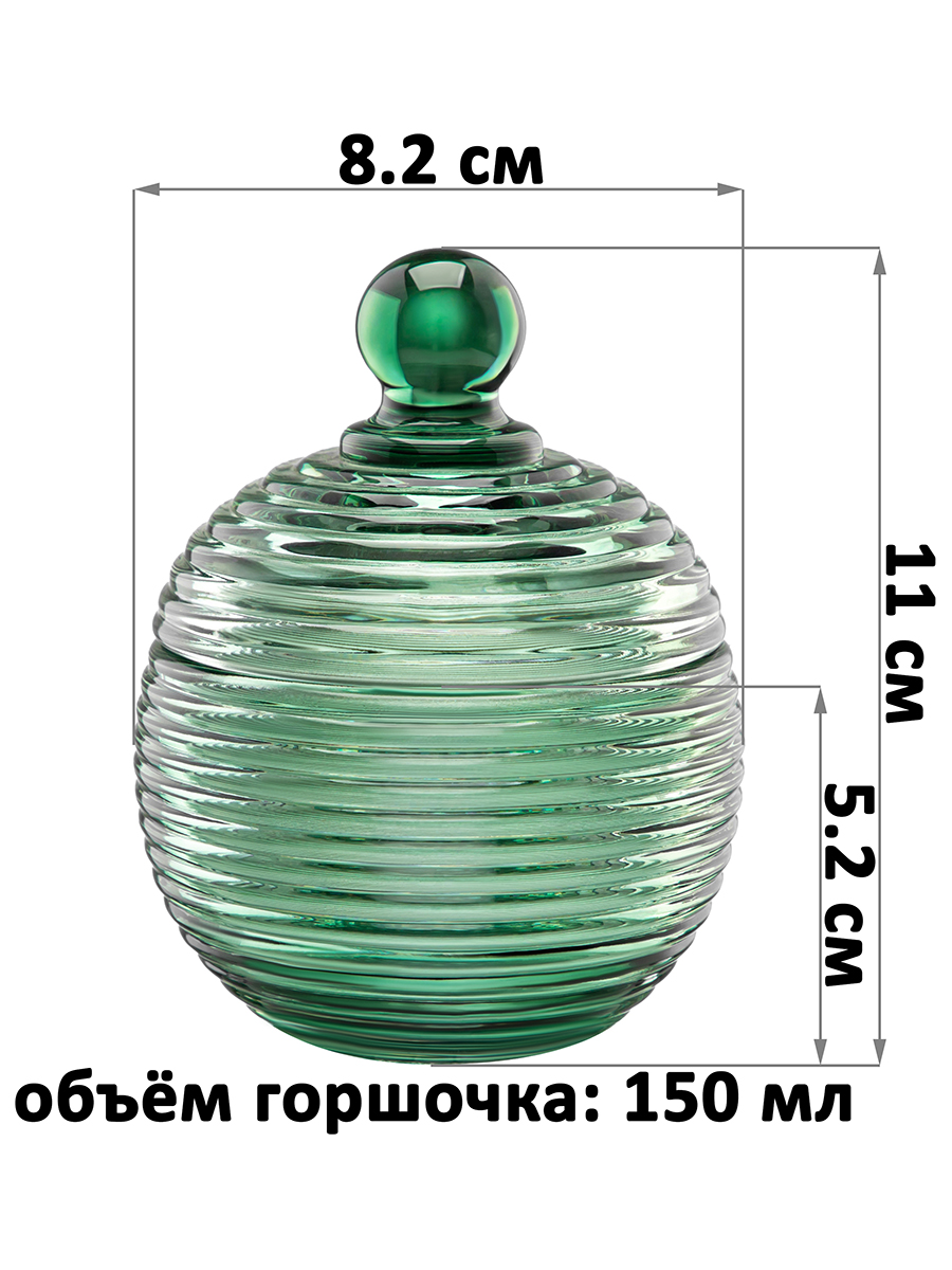 БЫЛО 415 руб! Горшочек д/меда 150 мл 8,2*8,2*11 см "Каскад" зеленый