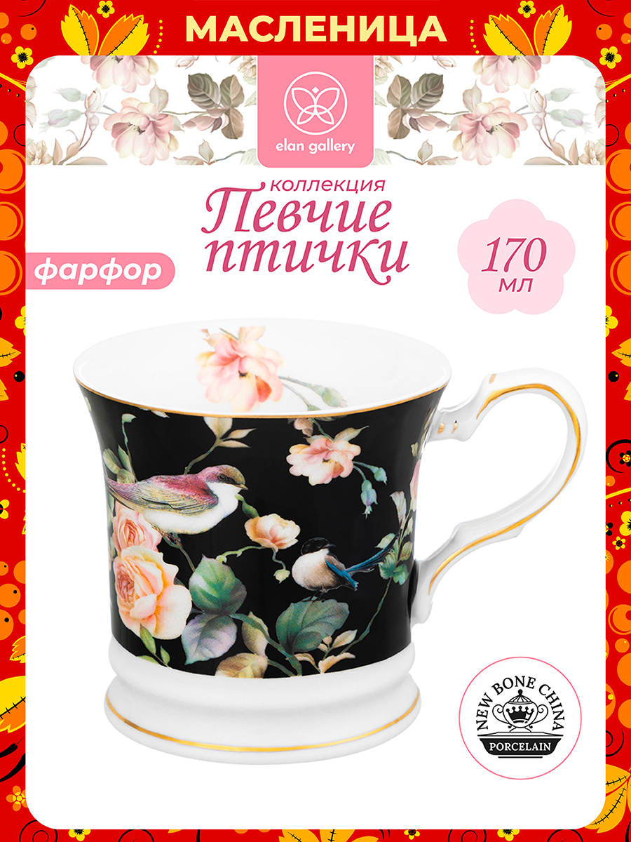 Кружка из серии "Певчие птички на чёрном" от Elan Gallery предназначена для эстетичной сервировки вашего стола. Размер – 10,5х8х7,5 см, объём – 170 мл. Изготовлена из фарфора нового поколения new bone china, сочетающего в себе изящность и высокую прочность. За счёт гладкости изделие легко отмывается, поэтому сохраняет привлекательный внешний вид и практично в использовании. Поможет отпраздновать Широкую Масленицу со вкусом! Масленица – это чудесный повод собраться за праздничным столом и насладиться тёплой атмосферой и традиционной русской кухней. В ассортименте бренда Elan Gallery вы найдёте предметы декора и красивую посуду для приготовления и сервировки масленичных блюд. Пусть Масленичная неделя принесет вам радость и множество вкусных моментов! От костяного фарфора new bone china отличается большей экологичностью в производстве. Кружечка с изображениями птичек и розовых цветов на чёрном фоне украшена золотистым кантом. Декоративная кофейная кружечка поможет провести множество приятных завтраков с капучино и латте, а также уютные чайные вечера с конфетами, вафлями, другими десертами и сладостями. Подойдёт ценителям чая и кофе, которые любят пить из красивой и необычной посуды. Благодаря небольшому объёму отлично для эспрессо! Согрейтесь зимой любимым напитком: какао с маршмеллоу, ягодным чаем или горячим шоколадом. Летом освежитесь домашним лимонадом или морсом. Не рекомендуется применять абразивные моющие средства. Чашечку нельзя использовать в посудомоечной машине и микроволновой печи. Поставляется в дизайнерской картонной коробке – благодаря ей вам не потребуется дополнительная подарочная упаковка. Фарфоровая сервировочная посуда станет чудесным подарком на любой праздник и добавит эстетики ежедневному чаепитию. В коллекции бренда Элан Галерея представлено много стильных товаров для дома, в том числе всё для эстетичного чаепития. Выберите варианты на свой вкус!