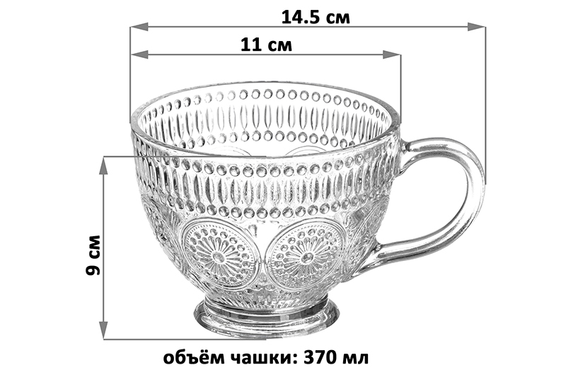 Набор 2 чашек от бренда Elan Gallery с рельефным орнаментом поможет провести множество приятных вечеров с любимыми напитками и станет украшением вашей кухни. Широкие кружечки на изящных ножках выполнены из стекла. Размер каждой – 14,5х11х9 см, объём – 370 мл. Стеклянные изделия украшены изящным узором. Кружки с ребристой поверхностью точно вызовут восхищение у ваших гостей! Оригинальный дизайн добавит изысканности любому интерьеру вашей кухни или столовой. Кружечка с прозрачными стенками подходит ценителям чая и кофе, которые любят пить из красивой и необычной посуды. Это идеальный вариант для того, чтобы согреться горячим напитком зимой и освежиться прохладным лимонадом летом. Интересная кружечка с удобной ручкой украсит ваш стол своим стильным дизайном как на праздник, так и в будни. Используйте её под любые напитки, например, как кофейную под капучино или латте. Красивый бокал станет украшением любого стола и незаменимым предметом на чаепитии или чайной церемонии! Беречь от механических повреждений и резких перепадов температур. Чашки нельзя использовать в микроволновой печи. Можно мыть в посудомоечной машине. Комплект станет приятным сюрпризом на любой праздник. Поставляется в стильной коробке. Благодаря красочной коробочке вам не придётся искать дополнительную подарочную упаковку. В коллекции бренда Elan Gallery представлено много красивой посуды, кухонного инвентаря и других товаров для дома. Здесь вы найдёте всё для эстетичной сервировки и создания уюта. Создайте себе праздничное настроение даже в обычный день или используйте набор для особого случая. Комплект от Elan Gallery превратит любой день в настоящий праздник!