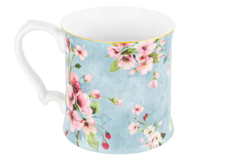 БЫЛО 442 руб! Кружка 380 мл 12,3*9*9 см "Яблоневый цвет на голубом" NEW BONE CHINA