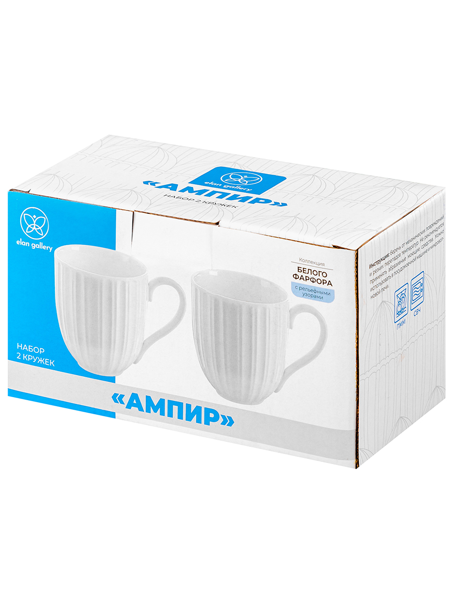 Набор 2 кружек из серии «Ампир» от Elan Gallery предназначен для эстетичной сервировки вашего стола. Размер каждой ёмкости – 12х8,5х9,5 см, объём – 330 мл. Выполнены из высококачественного белого фарфора. Он не впитывает цвет продуктов и легко отмывается, благодаря чему надолго сохранит свою белизну. Поверхность изделий украшает элегантный ребристый рельеф. Кофейные кружки необычной формы помогут вам провести множество приятных завтраков с капучино и латте, а также уютные чайные вечера с конфетами, вафлями и другими десертами и сладостями. Подойдут ценителям чая и кофе, которые любят пить из красивой и необычной посуды. Согрейтесь зимой любимым напитком: какао с маршмэллоу, ягодным чаем или горячим шоколадом. Летом освежитесь домашним лимонадом или морсом. Декоративные изделия позволят организовать запоминающееся чаепитие. Не рекомендуется применять абразивные моющие средства. Подходят для использования в посудомоечной машине и микроволновой печи. Поставляются в дизайнерской картонной коробке – благодаря ей вам не потребуется дополнительная подарочная упаковка. Фарфоровая сервировочная посуда будет оригинальным подарком для хозяйки, ценящей не только практичность, но и привлекательность. Серия «Ампир» от бренда Элан Галерея станет украшением любого кухонного инвентаря и позволит собрать красивый сервиз в едином стиле!