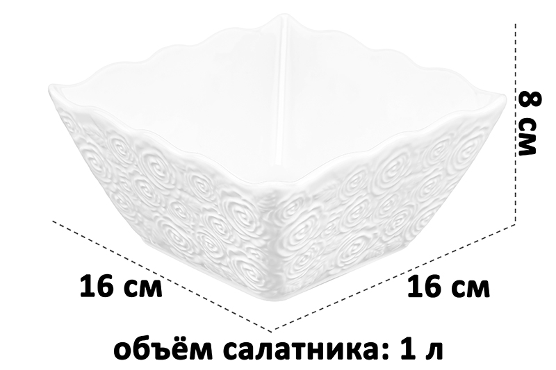 БЫЛО 450 руб! Салатник квадратный 16*16*8 см 1 л "Розы", фарфор
