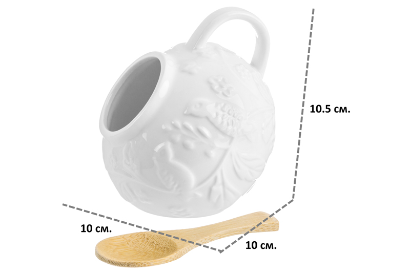 Банка для соли «Птички на ветке» объемом 180 мл с деревянной ложкой прекрасное современное дизайнерское решение для сервировки. Теплое цветовое решение и изящный рельеф баночки подходит любой сервировке и добавит уюта в каждый дом. В серии фарфоровой посуды с использованием бамбука представлен широкий ассортимент товаров для сервировки стола, которые, несомненно, впишутся в любой интерьер благодаря лаконичному дизайну, натуральным материалам и высокой функциональности. Такому подарку будет рада любая хозяйка!