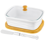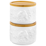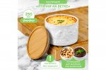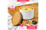 БЫЛО 462 руб!Банка д/хранения 450 мл 9*9*12 см с бамбуковой крышкой с сил. упл. белая матовая
