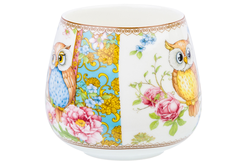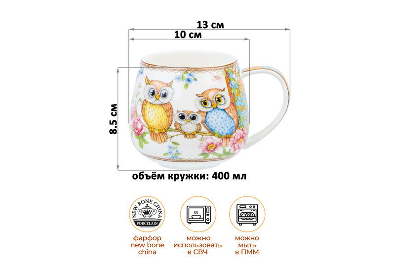 БЫЛО 478 руб! Кружка 400 мл 13*10*8,5 см "Совушки" бочонок фарфор NEW BONE CHINA