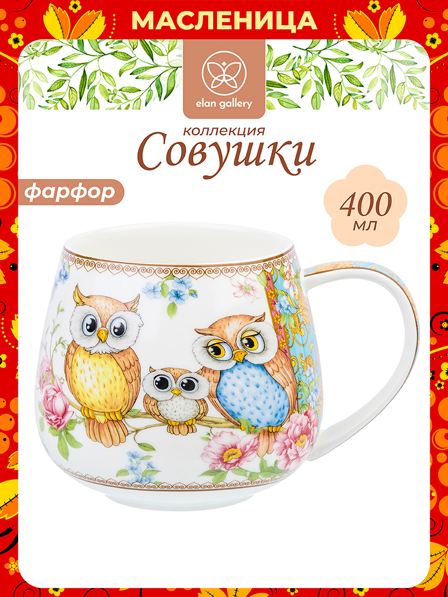 Кружка из серии «Совушки» от Elan Gallery предназначена для эстетичной сервировки вашего стола. Размер изделия – 13х10х8,5 см, объём – 400 мл. Выполнена из фарфора нового поколения new bone china, сочетающего в себе изящность и высокую прочность. За счёт гладкости изделия легко отмываются, поэтому сохраняют привлекательный внешний вид и практичны в использовании. От других видов костяного фарфора new bone china отличается большей экологичностью в производстве. Поможет отпраздновать Широкую Масленицу со вкусом! Масленица – это чудесный повод собраться за праздничным столом и насладиться тёплой атмосферой и традиционной русской кухней. В ассортименте бренда Elan Gallery вы найдёте предметы декора и красивую посуду для приготовления и сервировки масленичных блюд. Пусть Масленичная неделя принесет вам радость и множество вкусных моментов! Поверхность изделия украшает забавный рисунок: две совы и маленький совёнок с большими глазами сидят на ветке дерева. Нежные бутоны розовых и голубых цветов, а также растительный узор на фоне придают композиции сказочности и тепла. Кофейная кружка поможет вам провести множество приятных завтраков с капучино и латте, а также уютные чайные вечера с десертами и сладостями. Подойдёт ценителям чая и кофе, которые любят пить из красивой и необычной посуды. Согрейтесь зимой любимым напитком: какао с маршмэллоу, ягодным чаем или горячим шоколадом. Летом освежитесь домашним лимонадом или морсом. Декоративное изделие позволит организовать запоминающееся чаепитие. Не рекомендуется применять абразивные моющие средства. Подходит для использования в посудомоечной машине и микроволновой печи. Поставляется в дизайнерской картонной коробке – благодаря ей не потребуется подарочная упаковка. Фарфоровая сервировочная посуда будет оригинальным подарком для хозяйки, ценящей не только практичность, но и привлекательность. Серия «Совушки» от бренда Элан Галерея станет украшением любого кухонного инвентаря и позволит собрать красивый сервиз в едином стиле!