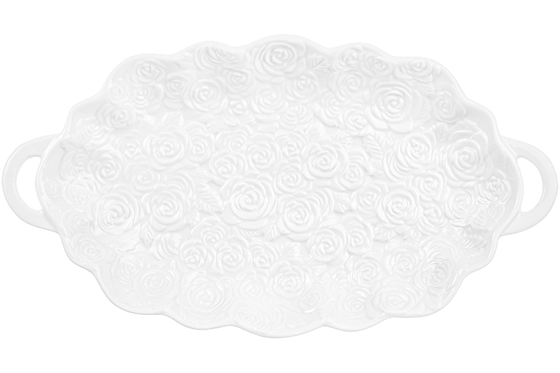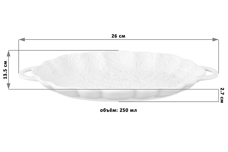 Блюдо для нарезки из серии «Розы» от Elan Gallery предназначено для эстетичной сервировки вашего стола. Размер изделия – 26х13,5х2,7 см, объём – 250 мл. Выполнено из высококачественного белого фарфора. Он не впитывает цвет продуктов и легко отмывается, благодаря чему надолго сохраняет свою белизну. Поверхность изделия украшают рельефные узоры в виде пышных бутонов роз. Подойдёт для подачи мясной и сырной нарезки, а также разнообразных деликатесов. Можно использовать для праздничной сервировки бутербродов и канапе. Эстетично преподнесите к столу суши и роллы. Блюдо поможет угостить большое количество гостей дольками фруктов или овощами, а также десертами и сладостями. Разложите на нём конфеты, пирожки и пирожные, кусочки торта или домашнего пирога. Удобные ручки облегчат переноску изделия. Благодаря лаконичному дизайну оно впишется в интерьер любой кухни, гостиной и столовой. Не рекомендуется применять абразивные моющие средства. Подходит для использования в посудомоечной машине и микроволновой печи. Поставляется в дизайнерской картонной коробке – благодаря ей вам не потребуется дополнительная подарочная упаковка. Фарфоровая сервировочная посуда будет оригинальным подарком для хозяйки, ценящей не только практичность, но и привлекательность. Серия «Розы» от бренда Элан Галерея станет украшением любого кухонного инвентаря и позволит собрать красивый сервиз в едином стиле!