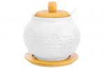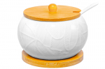 Сахарница Elan Gallery "Медальон" с крышкой выполнена из стекла и украшена декоративным рельефным узором в виде горизонтальных полосок. Стеночку стеклянного изделия украшает выпуклое изображение, напоминающее круглый медальон с декоративными элеменами в форме пузырьков. Можно использовать в роли горшочка для мёда. Размер изделия – 8,5х8,5х12 см, объём – 300 мл. Высота без крышки – 8,5 см. Прозрачная баночка с полосатым рельефом подойдёт для хранения мёда, варенья, сахара и соли. Можно использовать её как ёмкость для чая, кофе и других сыпучих продуктов. Декоративная баночка станет гармоничным дополнением при сервировке вашего стола как в будни, так и на праздник. Красивый дизайн позволит использовать её не только для хранения продуктов, но и для подачи на стол. Положите в неё конфеты или икру, чтобы удивить гостей изящной сервировкой. Стеклянную ёмкость с крышечкой можно использовать не только как медовый бочонок, икорницу или соусник, но и для специй и приправ. Это позволит держать под рукой всё необходимое во время приготовления и приёма пищи. На даче подойдёт для семейного чаепития в роли медовницы, а также для подачи ягод. В качестве альтернативы красивую вазочку с крышкой можно использовать как шкатулку или органайзер. Сложите в неё украшения, ватные диски или гигиенические палочки. Подходит в роли стакана для свечи. Не рекомендуется применять абразивные моющие средства. Нельзя использовать в микроволновой печи. Можно мыть в посудомоечной машине. Поставляется в стильной картонной упаковке. Красивая посуда – это отличный подарок на любой праздник. Бочонок "Медальон" станет многофункциональным дополнением вашего кухонного инвентаря и украсит домашний интерьер!