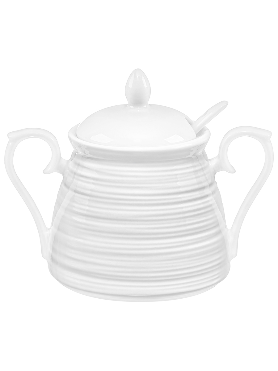Сахарница Elan Gallery "Шёлк" с ложечкой в комплекте выполнена из белого фарфора. Украшена рельефным узором, напоминающим шёлковые нити. Размер сахарницы – 14,5х10х11,5 см, объём – 350 мл. Имеет удобные для переноса ручки. Размер ложки – 13х2,5 см. Высота без крышки – 8 см. Размер дна – 9,5 см. Декоративная баночка с ручками станет гармоничным дополнением при сервировке вашего стола как в будни, так и на праздник. Она добавит особого шарма вашей кухне во время завтрака или чаепития. Стильная и функциональная сахарница займет отличное место в вашей коллекции фарфоровой посуды. Вместимость контейнера обеспечит достаточно места для хранения сахара, соли и других сыпучих продуктов на кухне или в столовой. Фарфоровая сахарница станет отличным элементом декора вашей кухни. Ёмкость с крышечкой можно приспособить не только под сахар, но и для варенья, мёда или икры. Отличная альтернатива медовому горшочку или бочонку, используйте её как медовницу! Подойдёт для специй или приправ. Не рекомендуется применять абразивные моющие средства. Можно использовать в микроволновой печи и мыть в посудомоечной машине. Поставляется в картонной коробке. Благодаря яркой коробочке вам не понадобится дополнительная подарочная упаковка! Станет приятным подарком для тех, кто ценит стильную сервировку. В коллекции бренда Элан Галерея можно найти много красивого кухонного и столового инвентаря, а также собрать сервиз на свой вкус.