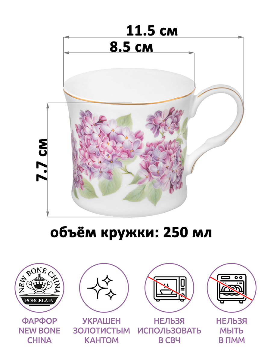 БЫЛО 514 руб! Кружка 250 мл 11,5*8,5*7,7 см "Сирень" фарфор NEW BONE CHINA