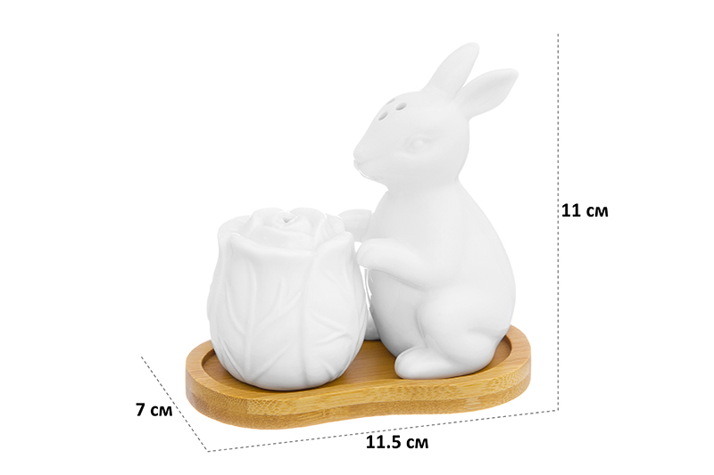 БЫЛО 537 руб!! Набор д/специй 2 пр. 11,5*7*11 см "Заяц с капустой" на дерев. подставке