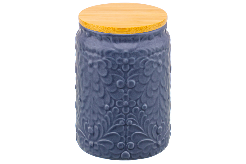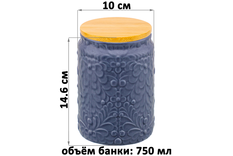 Банка от Elan Gallery предназначена для организации хранения продуктов на вашей кухне. Размер ёмкости – 10х10х14,6 см, объём – 750 мл. Выполнена из керамики и имеет серо-синий цвет, матовая поверхность украшена рельефным лиственным орнаментом. Крышка выполнена из натурального бамбука и оснащена силиконовым уплотнителем. Изделие отлично подойдёт для хранения сыпучих продуктов: сахара и соли, чая и кофе, приправ и специй. Храните в баночке ягоды, орехи и сухофрукты. Заполните её любимыми сладостями: леденцами, конфетами или печеньем. Подайте к столу, чтобы идеально дополнить чайную сервировку! Герметичная деревянная крышечка защитит ваши продукты от попадания грязи и пыли. Коллекция из двух баночек лаконичных цветов впишется в любой интерьер и позволит организовать хранение даже на открытых полках. Не рекомендуется применять абразивные моющие средства. Не подходит для использования в микроволновой печи. Без бамбуковой крышки подходит для посудомоечной машины. Бамбук нельзя замачивать! Поставляется в дизайнерской картонной коробке – благодаря ей вам не потребуется дополнительная подарочная упаковка. Это идеальный подарок для хозяйки, ценящей не только практичность, но и стиль. В ассортименте бренда Элан Галерея представлены банки для хранения на любой вкус. Соберите целый набор кухонных контейнеров для эстетичного хранения продуктов на вашей кухне!