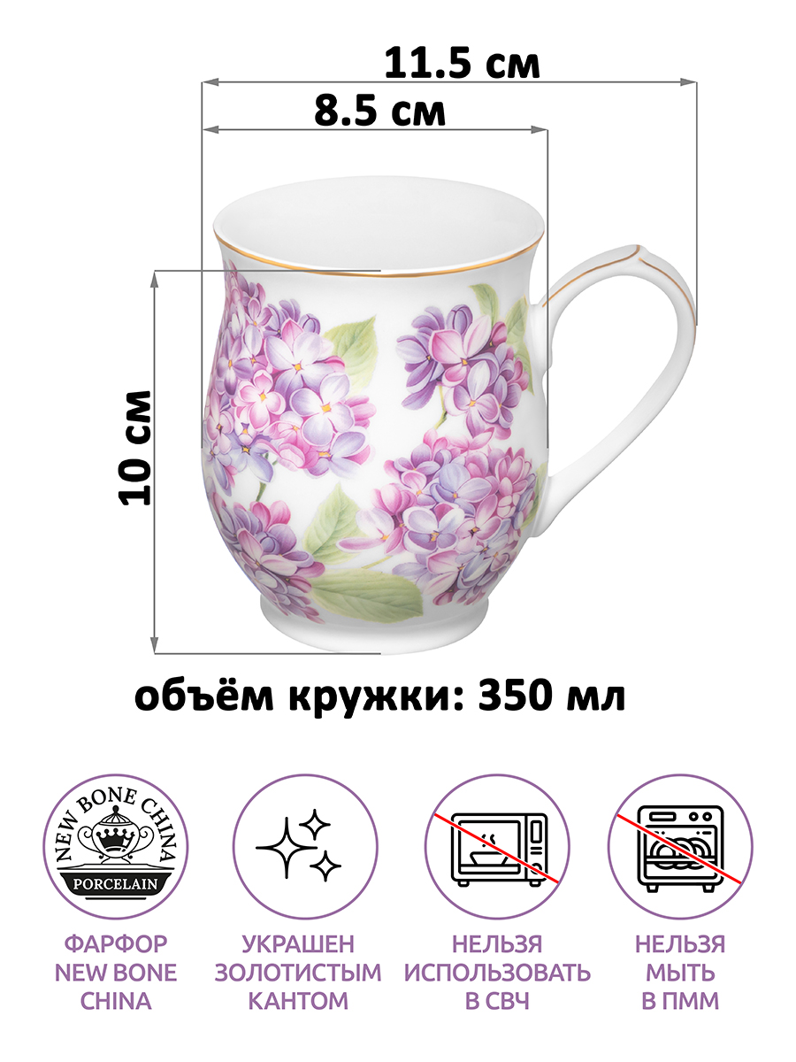 БЫЛО 562 руб! Кружка 350 мл 11,5*8,5*10 см "Сирень" бочонок, фарфор NEW BONE CHINA