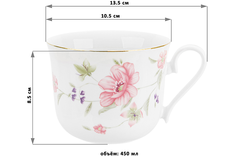 БЫЛО 563 руб! Кружка 450 мл 13,5*10,5*8,5 см "Диана", фарфор, NEW BONE CHINA