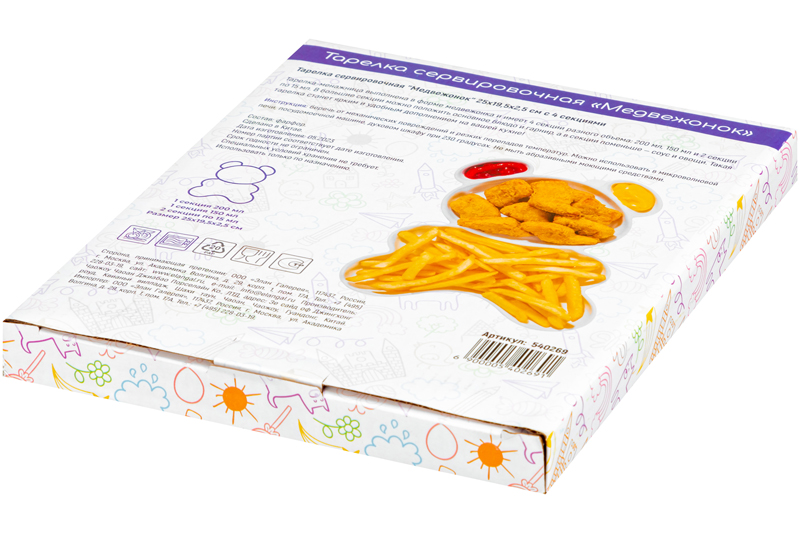 БЫЛО 563 руб! Тарелка сервировочная 25*19,5*2,5 см "Медвежонок" 4 секции