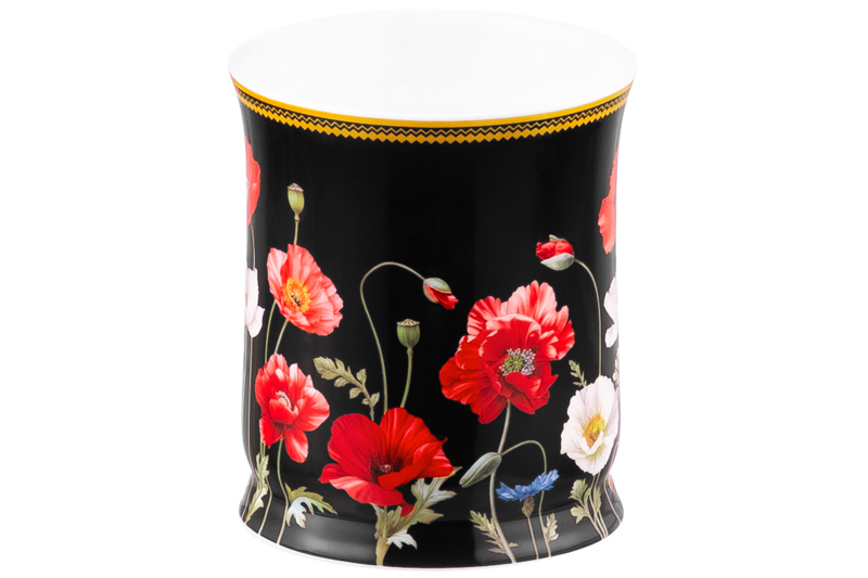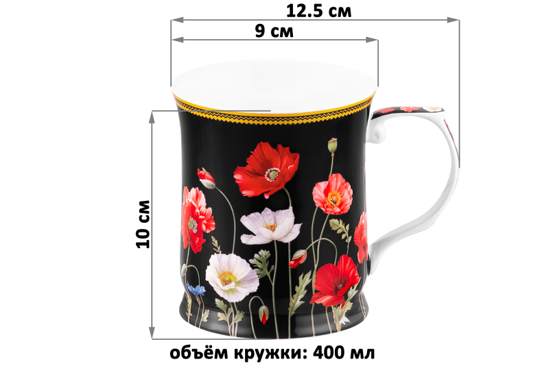 БЫЛО 571 руб! Кружка 400 мл 12,5*9*10 см "Маки на черном" NEW BONE CHINA