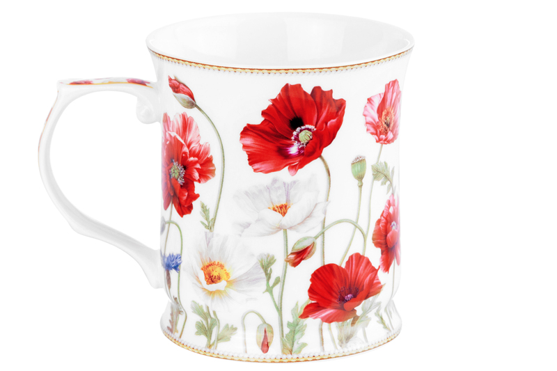 БЫЛО 571 руб! Кружка 400 мл 12,5*9*10 см "Маки" NEW BONE CHINA