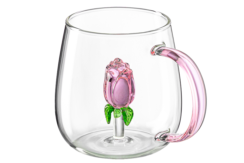 Кружка «Роза» предназначена для красивой сервировки стола. Размер изделия – 12х8,8х9 см, объём – 450 мл. Выполнена из термостойкого боросиликатного стекла. На дне прозрачной ёмкости с ручкой розового цвета располагается объёмная фигурка в виде нежного бутончика розы с зелёными листочками. Милая кружка понравится ценителям чая и кофе, которые любят пить из необычной посуды. Используйте её как детскую – она отлично подойдёт для молока, сока и воды любой температуры. Это идеальный вариант для уютных зимних вечеров в компании любимого горячего напитка. Летом в ней будут привлекательно смотреться напитки со льдом, ягодами и фруктами. Такая сервировочная посуда украсит ваш стол как на праздник, так и в будни, и послужит изысканным дополнением вашего сервиза. Благодаря лаконичному дизайну она впишется в интерьер любой кухни или столовой. Беречь от механических повреждений. Не рекомендуется применять абразивные моющие средства. Можно использовать в микроволновой печи и посудомоечной машине. Поставляется в стильной картонной упаковке – с ней вам не понадобится дополнительная подарочная коробка. Кружка с цветком станет прекрасным подарком для любой женщины. Декоративная стеклянная посуда поднимет настроение как детям, так и взрослым, и привнесёт эстетики в ваш чайный инвентарь!