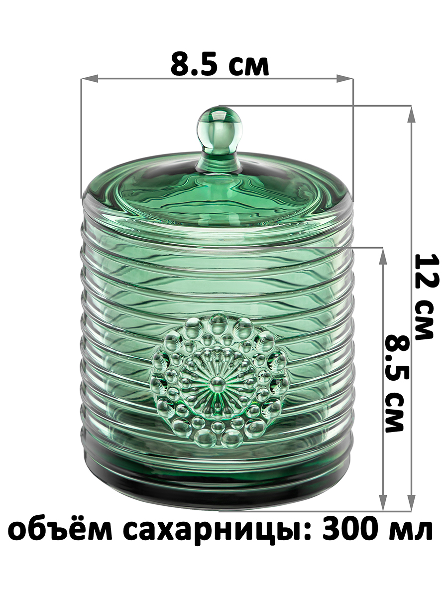 БЫЛО 591 руб! Сахарница 300 мл 8,5*8,5*12 см "Медальон" зеленый, стекло