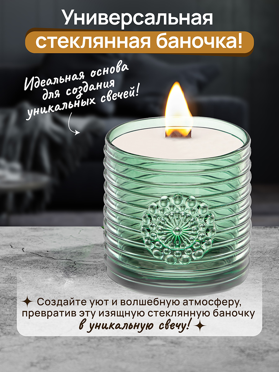 БЫЛО 591 руб! Сахарница 300 мл 8,5*8,5*12 см "Медальон" зеленый, стекло