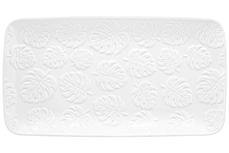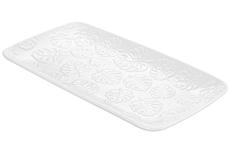 Прямоугольное блюдо Elan Gallery "Тропики" размером 30,5х16,5х2,5 см выполнено из белого фарфора в классическом дизайне. Тарелочка подойдет для подачи рыбных, мясных блюд и закусок. Можно использовать для сервировки нарезки, овощей или фруктов для угощения большого количества гостей. Посуда серии украшена рельефным узором в виде тропических листьев. Эргономичная форма тарелки позволит использовать её как поднос. Удобно разместить на сервировочном блюде кусочки торта, пирога и другие сладости. Подойдёт для эстетичной подачи суши, роллов и бутербродов. Фарфоровая посуда отличается от керамической повышенной плотностью. Фарфор не впитывает цвет продуктов и не деформируется от влаги, чему может быть подвержена керамика. Избегать резких перепадов температур и беречь от механических повреждений. Не рекомендуется применять абразивные моющие средства. Можно использовать в микроволновой печи и мыть в посудомоечной машине. Поставляется в красочной картонной упаковке. Станет отличным подарком для любой хозяйки, которая ценит стильную сервировку. Понравится любителям посуды в скандинавском стиле. Серия «Тропики» позволит собрать сервиз в едином стиле и станет украшением вашего дома.