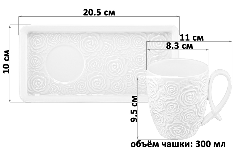 БЫЛО 599 руб! Чашка 300 мл 11*8,3*9,5 см "Розы" с фарфоровым блюдцем для десерта 20,5*10*2 см