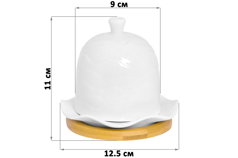 Подставка под лимон из серии «Айсберг волны» от Elan Gallery предназначена для эстетичной сервировки вашего стола. Размер изделия – 12,5х12,5х11 см, диаметр крышки – 9 см. Представляет собой фигурное блюдце с ажурными краями и крышку-купол с удобной ручкой. Выполнена из высококачественного белого фарфора. Он не впитывает цвет продуктов и легко отмывается, благодаря чему надолго сохраняет свою белизну. Поверхность изделия украшают рельефные узоры в виде поперечных волн. Подставка выполнена из натурального бамбука. Элегантная лимонница украсит любой стол как в будни, так и в праздники. Подходит для хранения продуктов в холодильнике – благодаря своей форме она вмещает даже крупный лимон. Заполните сервировочное блюдце любимыми конфетами, безе, зефиром или мармеладом. Необычная крышка придаст эффектность любой подаче. Такое изделие стильно дополнит сытный завтрак и уютное чаепитие. Не рекомендуется применять абразивные моющие средства. Без бамбуковой подставки подходит для использования в посудомоечной машине и микроволновой печи. Бамбук нельзя замачивать! Поставляется в дизайнерской картонной упаковке – благодаря ей вам не потребуется дополнительная подарочная упаковка. Фарфоровая сервировочная посуда будет оригинальным подарком для хозяйки, ценящей не только практичность, но и привлекательность. Серия «Айсберг волны» от бренда Элан Галерея станет украшением любого кухонного инвентаря и позволит собрать красивый сервиз в едином стиле!