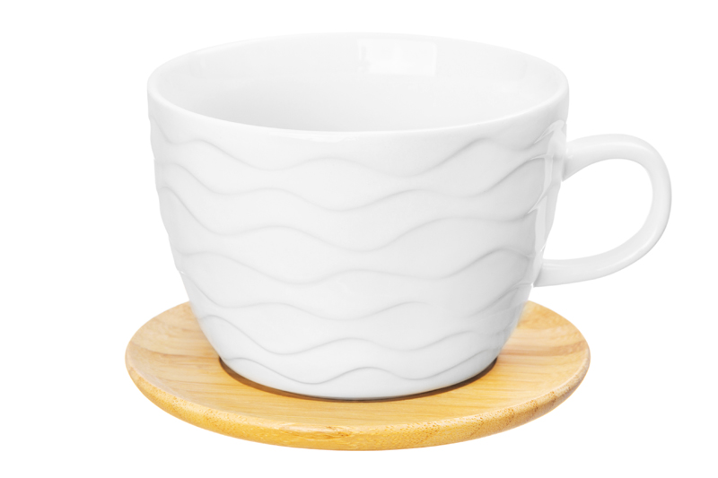 Чашка для капучино и кофе латте из серии «Айсберг волны» от Elan Gallery предназначена для эстетичной сервировки вашего стола. Размер ёмкости – 14,5х11,5х8 см, объём – 500 мл. Выполнена из высококачественного белого фарфора. Он не впитывает цвет напитков и легко отмывается, благодаря чему надолго сохранит свою белизну. Поверхность изделия украшают рельефные узоры продольных волн. Подставка выполнена из натурального бамбука. Размер подставки – 12,8х12,8х1 см. Кофейная кружка поможет вам провести множество приятных завтраков с капучино и латте, а также уютные чайные вечера с конфетами, вафлями, другими десертами и сладостями. Подойдёт ценителям чая и кофе, которые любят пить из красивой и необычной посуды. Согрейтесь зимой любимым напитком: какао с маршмэллоу, ягодным чаем или горячим шоколадом. Летом освежитесь домашним лимонадом или морсом. Декоративное изделие позволит организовать запоминающееся чаепитие. Деревянная подставка не только послужит стильным акцентом, но и защитит поверхность от воздействия высоких температур. Не рекомендуется применять абразивные моющие средства. Без бамбуковой подставки кружка подходит для использования в посудомоечной машине и микроволновой печи. Бамбук нельзя замачивать! Поставляется в дизайнерской картонной коробке – благодаря ей вам не потребуется дополнительная подарочная упаковка. Фарфоровая сервировочная посуда будет оригинальным подарком для хозяйки, ценящей не только практичность, но и привлекательность. Серия «Айсберг волны» от бренда Элан Галерея станет украшением любого кухонного инвентаря и позволит собрать красивый сервиз в едином стиле!