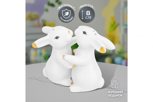 БЫЛО 609 руб! Набор д/специй 2 пр. 5,5*5,5*8 см "Кролики обнимашки" белый с золотом