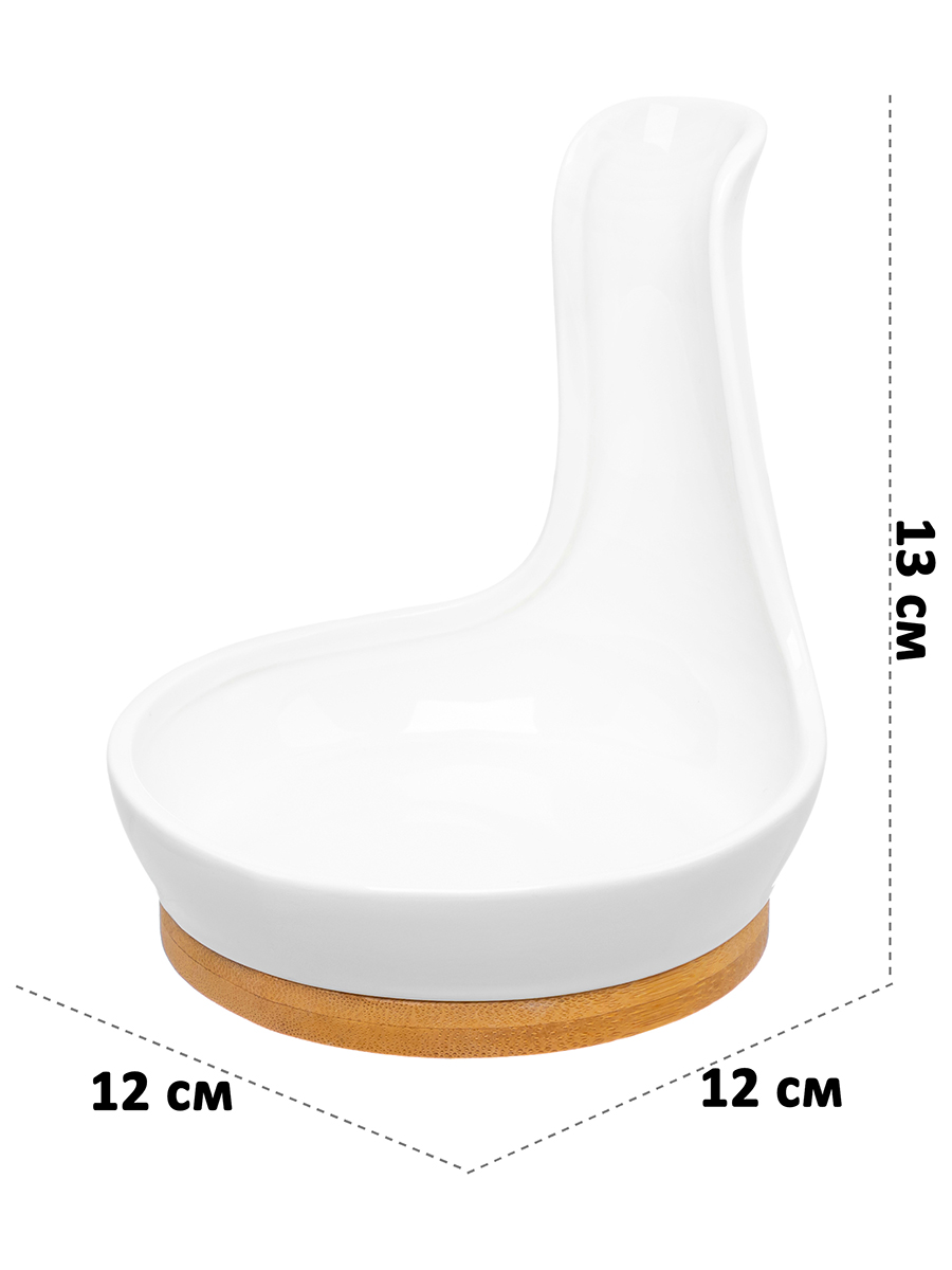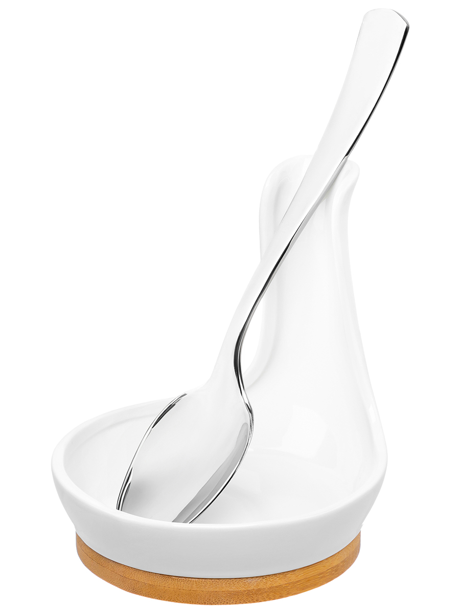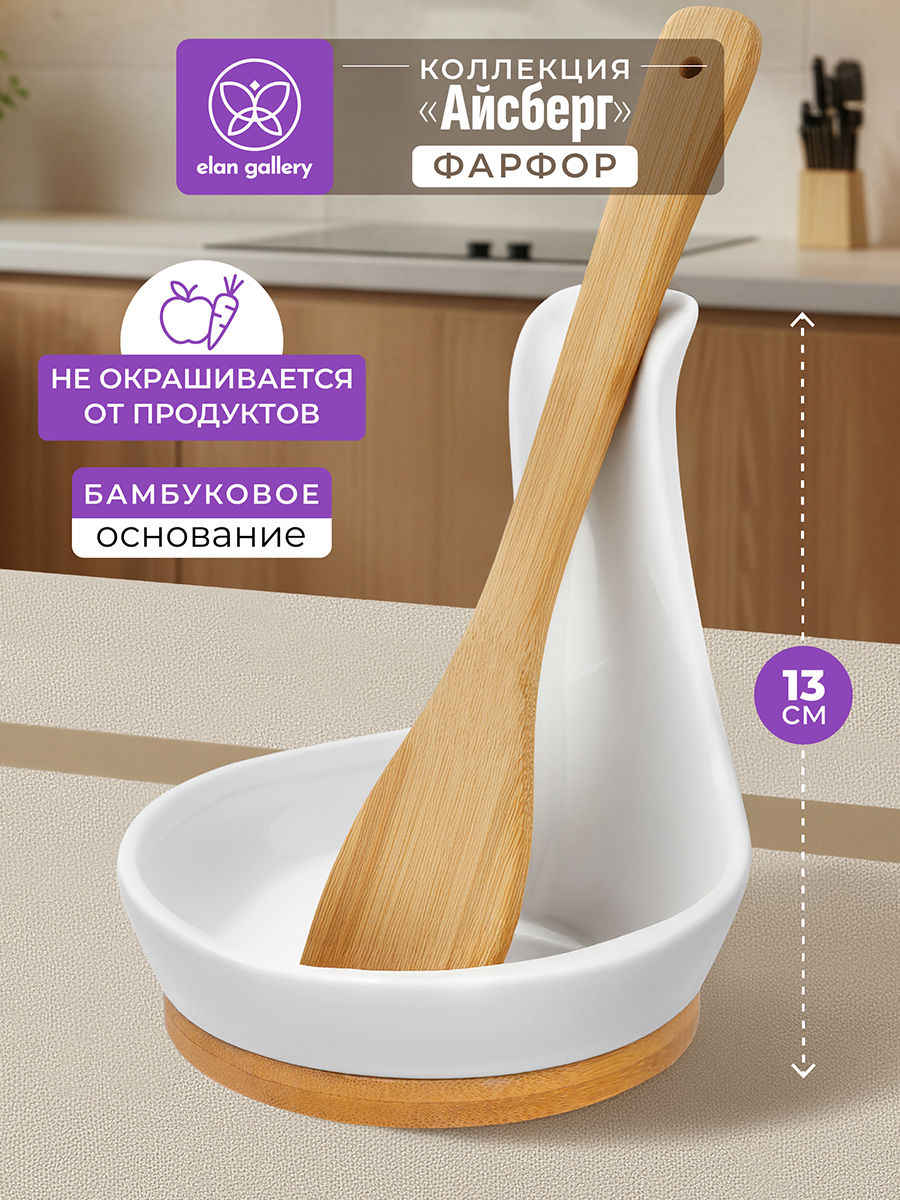 Подставка под ложку Elan Gallery "Айсберг" размером 12х12х13 см выполнена из фарфора. Поможет отпраздновать Широкую Масленицу со вкусом! Масленица – это чудесный повод собраться за праздничным столом и насладиться тёплой атмосферой и традиционной русской кухней. В ассортименте бренда Elan Gallery вы найдёте предметы декора и красивую посуду для приготовления и сервировки масленичных блюд. Пусть Масленичная неделя принесет вам радость и множество вкусных моментов! Имеет несъёмную бамбуковую подставку. Фарфоровая ложка и подставка из бамбука – одно целое. В процессе готовки вы можете положить на неё любые столовые приборы: ложки, вилки и лопатки, чтобы не испачкать поверхность. Изделия из фарфора не впитывают цвет и не деформируются от влаги, чему может быть подвержена керамика. Настольная подставка поможет сохранить стол в чистоте во время приготовления пищи. Из-за бамбуковой части изделие нельзя использовать в посудомоечной машине (ПММ). Бамбук нельзя замачивать! Посуда поставляется в стильной картонной упаковке. Полезный кухонный инвентарь станет чудесным подарком для любой хозяйки. Подарите подставку в форме ложки маме, бабушке или сестре на любой праздник. Удобное приспособление для столовых приборов станет незаменимым помощником в процессе приготовления пищи и украсит интерьер вашей кухни.