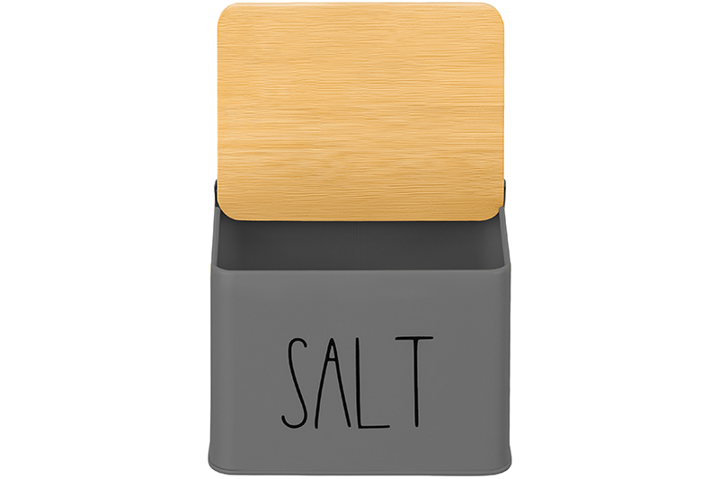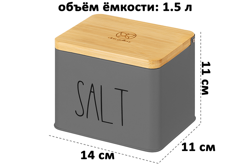 БЫЛО 630 руб! Емкость для хранения 1,5 л 14*11*11 см "SALT" с бамбуковой крышкой, темно-серый