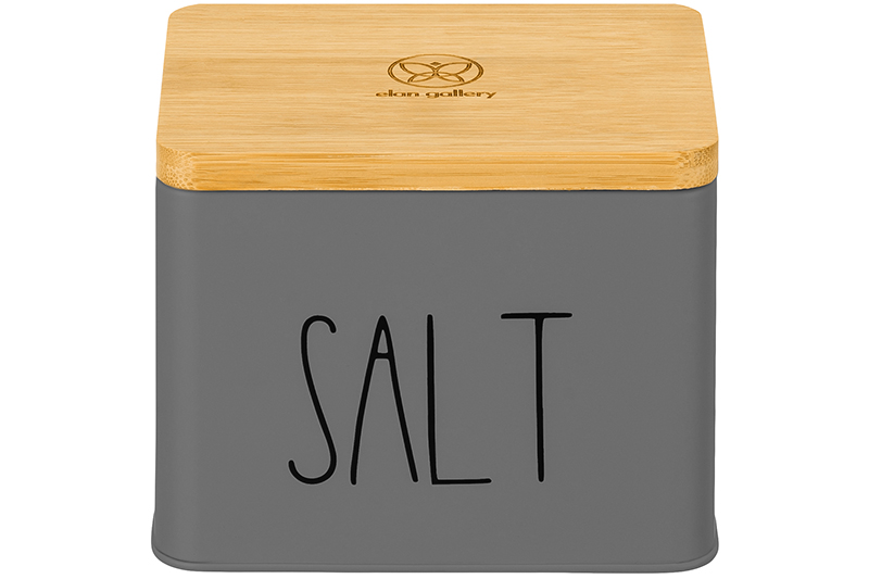 Ёмкость для соли Elan Gallery 14х11х11 см выполнена из качественного металла, что обеспечивает прочность и долговечность использования. Объём – 1,5 литра. Банка серого цвета украшена надписью "Salt" ("Соль"), имеет крышку из натурального бамбука. Бамбуковая крышечка позволяет сохранить свежесть и аромат продуктов, а также защищает содержимое от пыли и влаги. Металлическая баночка для сыпучих продуктов позволит эстетично хранить соль на вашей кухне и станет элементом её декора. Солонку можно использовать для любых продуктов, например, пищевой соды, специй или приправ. Декоративная посуда поможет навести порядок на вашей кухне, ее стильный дизайн подойдет к любому интерьеру. Не рекомендуется применять абразивные моющие средства. Не использовать в СВЧ и ПММ. Станет приятным подарком для хозяйки, которая ценит красивый кухонный инвентарь. Такая посуда станет настоящим украшением вашей кухни и поможет создать в доме порядок и уют!