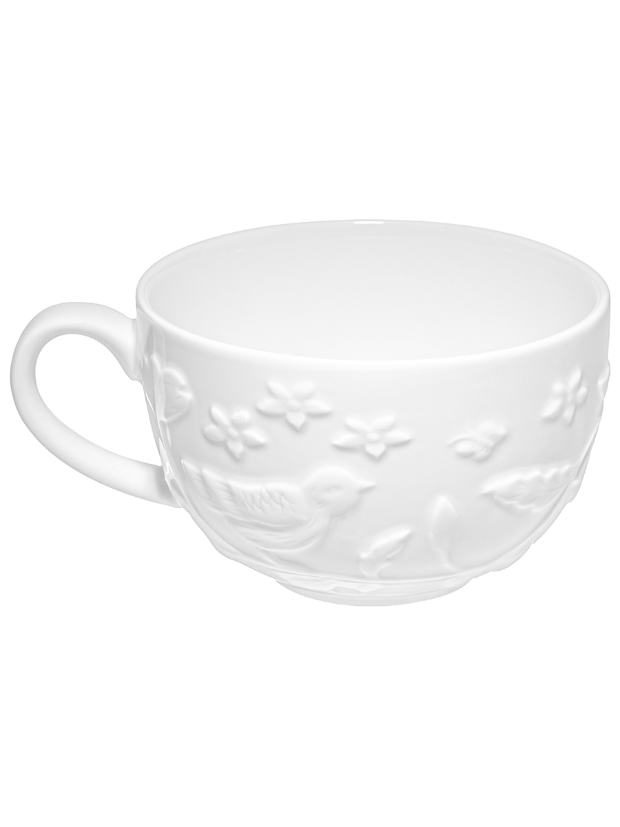 Чашка для капучино и кофе латте Elan Gallery "Птички на ветке" объёмом 340 мл выполнена из белого фарфора с рельефным узором. Имеет подставку из бамбука 12х12х1 см, можно использовать в роли крышки. Общий размер комплекта – 13х12х7,5 см. Размер кружки без подставки – 13х10х6,5 см. Большой бокал подходит ценителям кофе, которые любят пить из красивой и необычной посуды. Это идеальный вариант для того, чтобы согреться горячим напитком зимой и освежиться прохладным лимонадом летом. Подойдёт для любых напитков, например, чая. Благодаря большому объёму станет незаменимым предметом на долгом чаепитии или чайной церемонии! Широкая кружечка с бамбуковым блюдцем украсит ваш стол своим стильным дизайном как на праздник, так и в будни. Можно использовать в роли чайной пары. Не рекомендуется применять абразивные моющие средства. Беречь от механических повреждений и резких перепадов температур. Без бамбуковой тарелочки (подставки) можно греть в микроволновой печи и мыть в посудомоечной машине. Бамбук нельзя замачивать! Поставляется в картонной коробке. Станет приятным подарком на любой праздник. Благодаря стильной картонной коробочке вам не понадобится дополнительная подарочная упаковка! Серия фарфоровой посуды "Птички на ветке" позволит собрать сервиз в едином стиле. В коллекции бренда Элан Галерея представлено много красивых товаров для дома. Вы обязательно найдёте что-то на свой вкус!