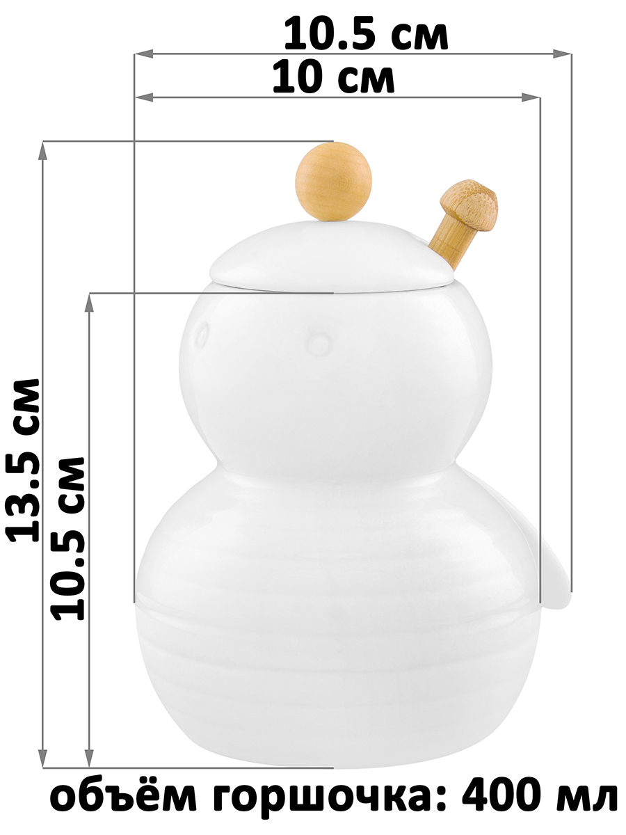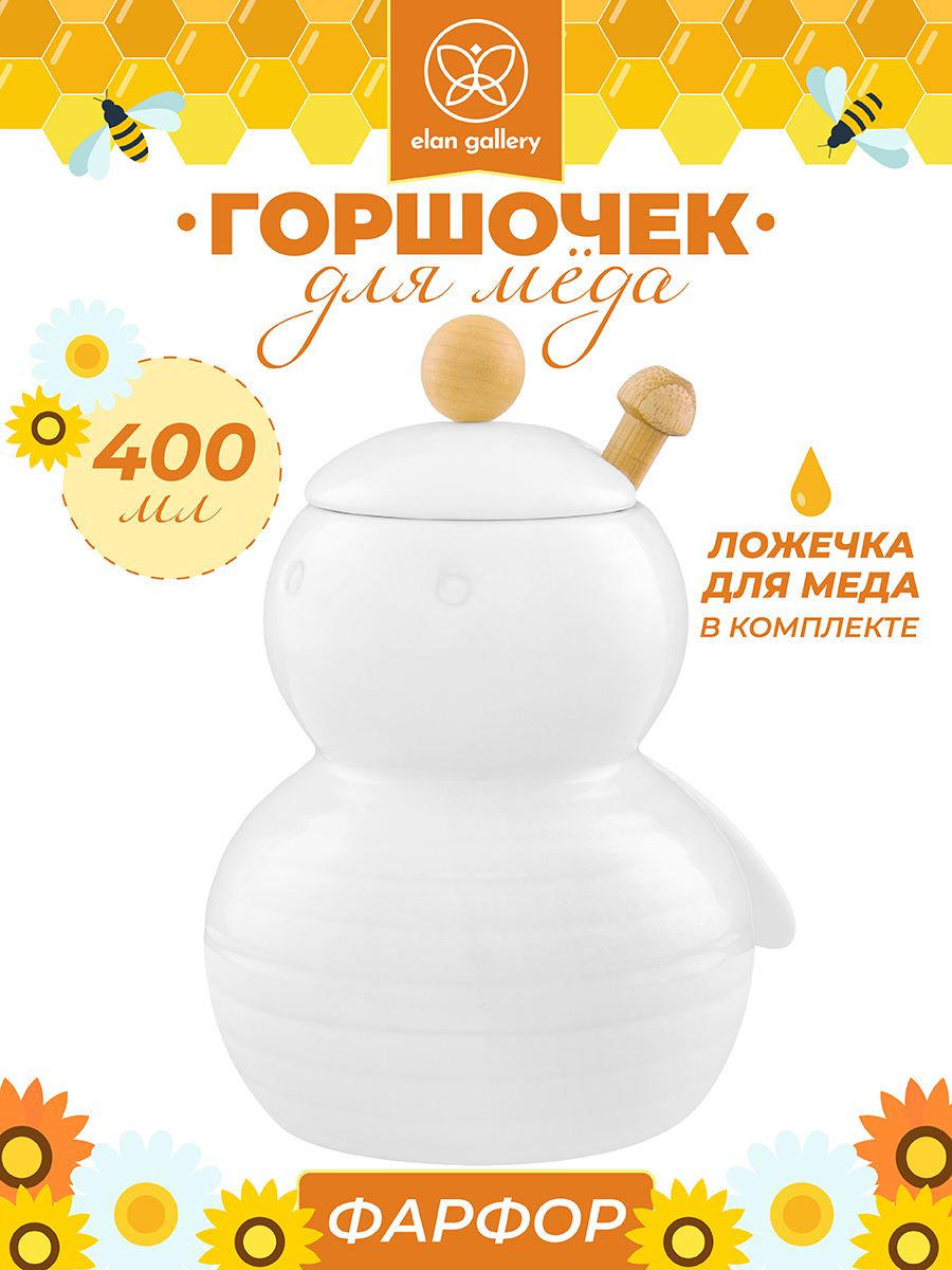 Горшочек для мёда «Пчёлка» от Elan Gallery предназначен для организации хранения продуктов на вашей кухне. Размер изделия – 10,5х10х13,5 см, объём – 400 мл. Выполнен из высококачественного белого фарфора. Он не впитывает цвет продуктов и легко отмывается, благодаря чему надолго сохраняет свою белизну. Специальная палочка для мёда (веретено) изготовлена из натурального бамбука. Фигурный горшочек – это прекрасная альтернатива классической баночке: его интересный дизайн украсит вашу сервировку в будни или на праздник. Поможет отпраздновать Широкую Масленицу со вкусом! Масленица – это чудесный повод собраться за праздничным столом и насладиться тёплой атмосферой и традиционной русской кухней. Заполните его вареньем или джемом, чтобы удивить гостей изящной сервировкой. Используйте для хранения конфет, орехов и сухофруктов. Засыпьте чай или кофе, сахар и крупы. На даче медовница станет незаменимой посудой для семейного чаепития, а также подойдёт для подачи и хранения ягод. Не рекомендуется применять абразивные моющие средства. Без крышки и бамбукового веретена ёмкость подходит для использования в посудомоечной машине и микроволновой печи. Бамбук нельзя замачивать! Поставляется в дизайнерской картонной коробке – благодаря ей вам не потребуется дополнительная подарочная упаковка. В ассортименте бренда Elan Gallery вы найдёте предметы декора и красивую посуду для приготовления и сервировки масленичных блюд. Пусть Масленичная неделя принесет вам радость и множество вкусных моментов!