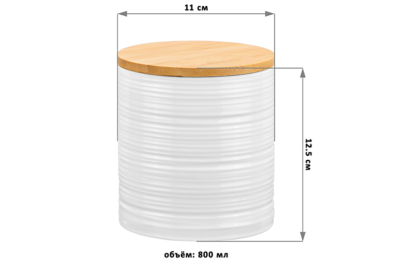 Банка для хранения Elan Gallery "Шёлк" объёмом 800 мл и размером 11х11х12,5 см выполнена из белого фарфора и украшена рельефными узорами. Баночка имеет крышку из натурального бамбука с силиконовым уплотнителем. Фарфоровая ёмкость станет удобным и эстетичным дополнением вашей кухни. Банка для сыпучих продуктов позволит не просто хранить чай, кофе и сахар на вашей кухне, но и станет элементом её декора. Можно использовать для соли, специй и приправ. Кухонная баночка подойдёт к интерьеру в любом стиле. Не рекомендуется применять абразивные моющие средства. Изделие без бамбуковых деталей можно использовать в микроволновой печи, посудомоечной машине. Бамбуковые детали нельзя замачивать! Поставляется в стильной картонной упаковке. Банка для сыпучих продуктов станет настоящим украшением кухни или приятным подарком для ваших родных и близких!
