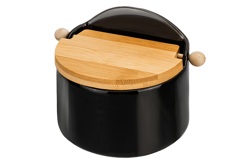 БЫЛО 661 руб! Банка д/сыпучих продуктов 500 мл 15*10*11,1 см "Черная" + откидная бамбук.крышка, керамика