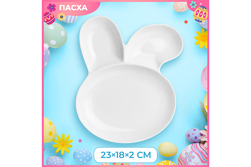 БЫЛО 663 руб! Блюдо - менажница 3 секции 23*18,5*2,5 см "Заяц" цельная, фарфор
