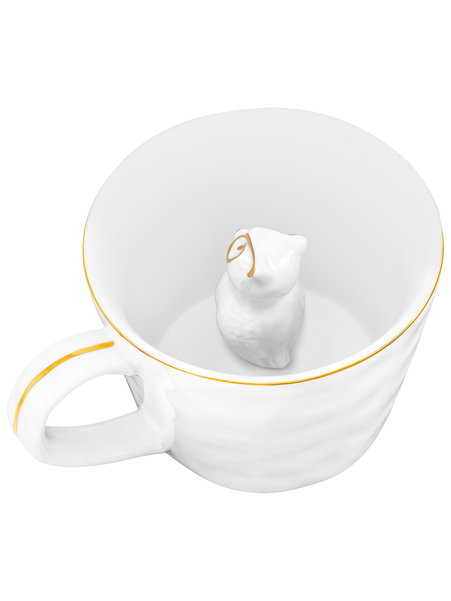 БЫЛО 668 руб! Кружка 300 мл 14*10*7,5 см "Сова" с фигуркой внутри, белый с золотом, фарфор