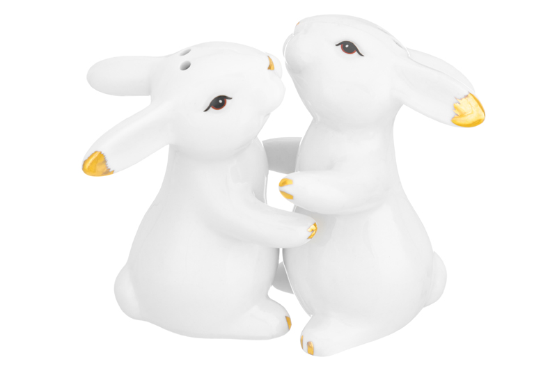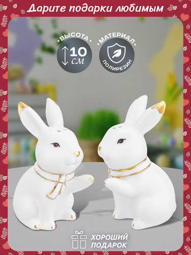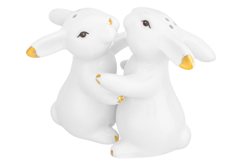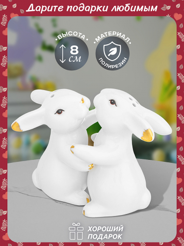 БЫЛО 668 руб! Набор д/специй 2 пр. 5,5*5,5*8 см "Кролики обнимашки" белый с золотом
