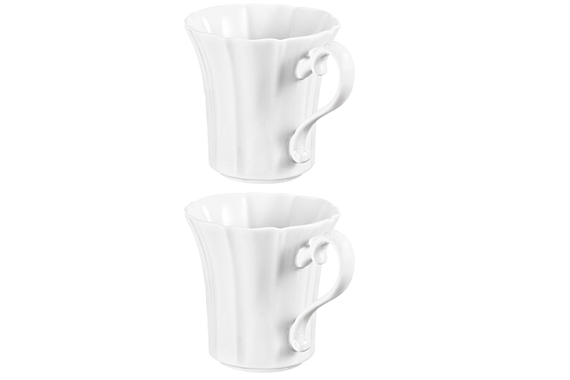 Набор 2 кружек из серии «Грация» от Elan Gallery предназначен для эстетичной сервировки вашего стола. Размер каждой ёмкости – 13х9,5х10 см, объём – 300 мл. Размер дна – 6,5х6,5 см. Выполнены из высококачественного белого фарфора. Он не впитывает цвет напитков и легко отмывается, благодаря чему надолго сохраняет свою белизну. Поверхность изделий украшена рельефом, навеянным формой распустившегося бутона. Нежный белый цвет и утончённый силуэт изделий придадут вашей сервировке особую лёгкость. Кофейные кружки с фигурными ручками помогут вам провести множество приятных завтраков с капучино и латте, а также уютные чайные вечера с конфетами, вафлями, другими десертами и сладостями. Подойдут ценителям чая и кофе, которые любят пить из красивой и необычной посуды. Согрейтесь зимой любимым напитком: какао с маршмэллоу, ягодным чаем, горячим шоколадом или глинтвейном. Летом освежитесь домашним лимонадом или морсом. Не рекомендуется применять абразивные моющие средства. Подходят для использования в посудомоечной машине и микроволновой печи. Поставляются в дизайнерской картонной коробке – благодаря ей вам не потребуется дополнительная подарочная упаковка. Фарфоровая сервировочная посуда будет оригинальным подарком для хозяйки, ценящей не только практичность, но и привлекательность. Серия «Грация» от бренда Элан Галерея создаёт атмосферу деликатной роскоши – для неспешных чаепитий, становящихся особенными моментами.