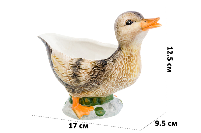 Блюдо «Уточка» от Elan Gallery предназначено для эстетичной сервировки вашего стола. Размер изделия – 17х9,5х12,5 см, объём – 250 мл. Выполнено из керамики в виде пёстрой уточки. Фигурное сервировочное блюдце подойдёт для подачи любых закусок и угощений как в повседневной сервировке, так и на празднике. Используйте его для оливок, орехов или сухофруктов. Наполните овощной и фруктовой нарезкой или ягодами. Подайте в нём конфеты, печенье, безе, зефир и другие сладости, чтобы привнести уюта в любое чаепитие. Благодаря необычному дизайну сервировочное изделие разнообразит интерьер кухни, столовой или гостиной. Добавьте вашему дому тепла вместе с симпатичной птичкой. Не рекомендуется применять абразивные моющие средства. Не подходит для использования в посудомоечной машине и микроволновой печи. Поставляется в дизайнерской картонной коробке – благодаря ей вам не потребуется дополнительная подарочная упаковка. В коллекции бренда Элан Галерея представлен богатый выбор декоративной посуды и красивых сувениров – каждый обязательно подберёт вариант на свой вкус. Они станут оригинальным подарком для родных, близких и коллег. Преобразите пространство вокруг себя, наполнив его неповторимым очарованием!
