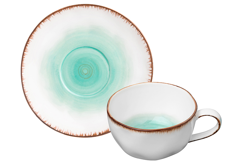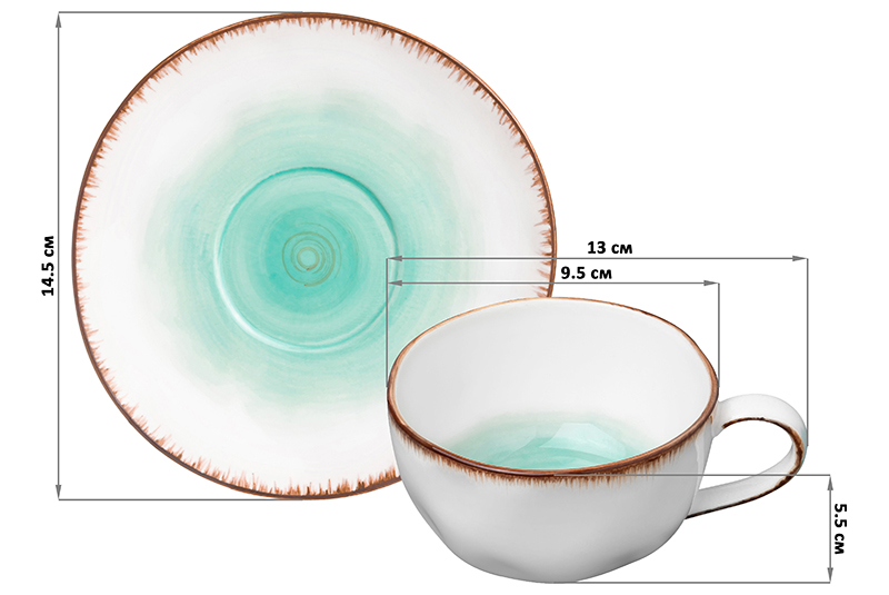 БЫЛО 691 руб! Чайная пара 2 пр. 250 мл 13*9,5*5,5 см "Кантри" бирюзовая