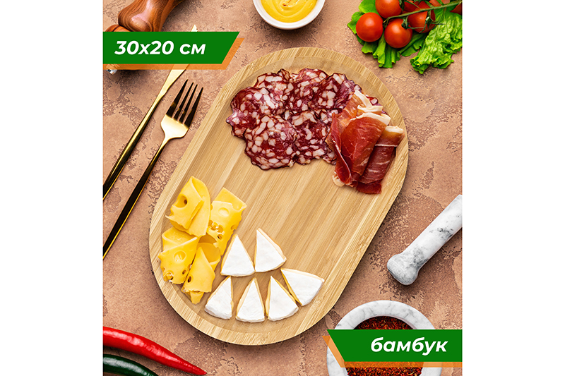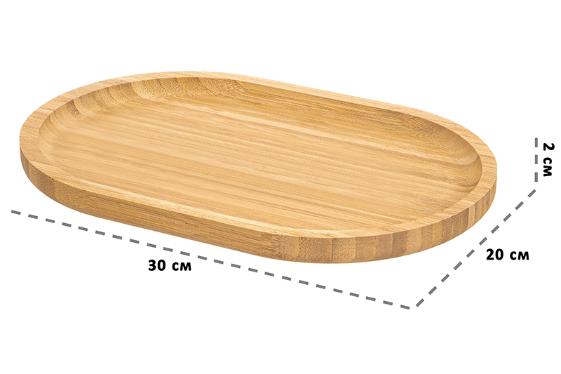 БЫЛО 696 руб! Поднос сервировочный 30*20*2 см, овальный, бамбук