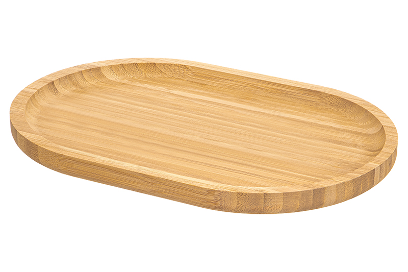 Сервировочный поднос от Elan Gallery предназначен для эстетичной подачи к столу. Размер изделия – 30х20х2 см, внутренний размер – 28х18 см. Выполнен из натурального бамбука и оснащён бортиками, которые обеспечат устойчивость посуды и предотвратят соскальзывание угощений. Используйте его для удобной сервировки готовых блюд и разнообразных напитков. Деревянная подставка также защитит поверхности столов и столиков от воздействия высоких температур. Подходит для использования в качестве сервировочной доски: прочная поверхность позволит подавать закуски без дополнительной посуды. За завтраком порадуйте себя бутербродами с сыром или колбасной нарезкой. Красиво преподнесите большие порции орешков, сухофруктов или канапе на праздничной вечеринке. Проведите уютное чаепитие, задействовав большую тарелку в качестве конфетницы: заполните её вашими любимыми сладостями, конфетами и десертами. Натуральный цвет дерева и мягкая овальная форма гармонично впишут поднос в интерьер любой кухни, столовой или гостиной, делая его не только функциональным, но и декоративным элементом вашего кухонного инвентаря. Не рекомендуется применять абразивные моющие средства. Не подходит для замачивания, использования в посудомоечной машине и микроволновой печи. После мытья тщательно протрите поверхность сухой тканью. Хранить вдали от нагревательных приборов при нормальном уровне влажности. Универсальный поднос станет оригинальным подарком для каждого, кто ценит не только практичность, но и привлекательность. В коллекции бренда Элан Галерея вы найдёте разнообразную столовую утварь, которая поможет сделать сервировку удобной и стильной.
